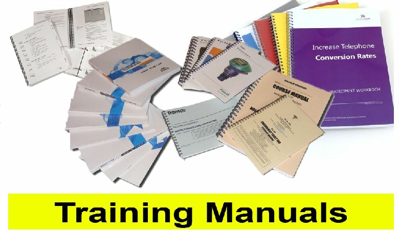 Training Manuals for Health and Safety, Security, Forklifting, First Aid etc. We print and bind according to you provided artwork Wire ring binding or Sliding pin